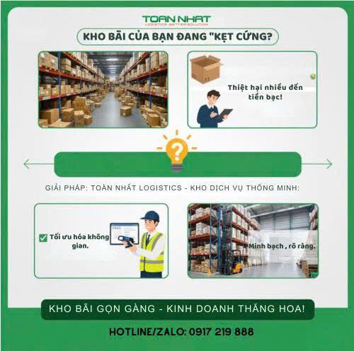 Bạn đang tìm kiếm BÍ QUYẾT để giải quyết tình trạng kho bãi lộn xộn, chậm trễ? Đừng để kho bãi trở thành gánh nặng! Toàn Nhất Logistics mang đến giải pháp kho dịch vụ toàn diện giúp bạn: